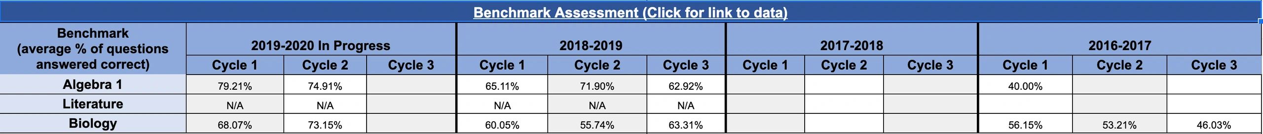 Benchmark scores in Alg 1 and Bio this year compared to those of last year.