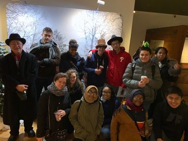 Drew, from the group called Drew Nugent & The Midnight Society came to Palumbo to do a lesson on 1920s music. He brought with him a "flapper" that taught students how to do the Charleston as well as the fashion of the "Roaring 20s."
